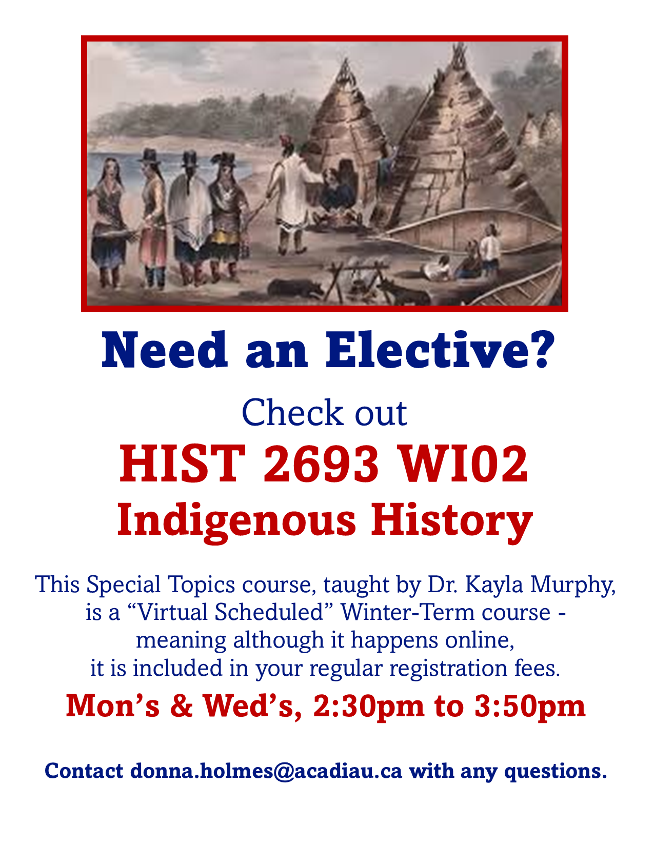 Students will be required to take 6hrs from each of the following three clusters. For a detailed list of these courses and/or more information about our program please consult the Acadia Academic Calendar.